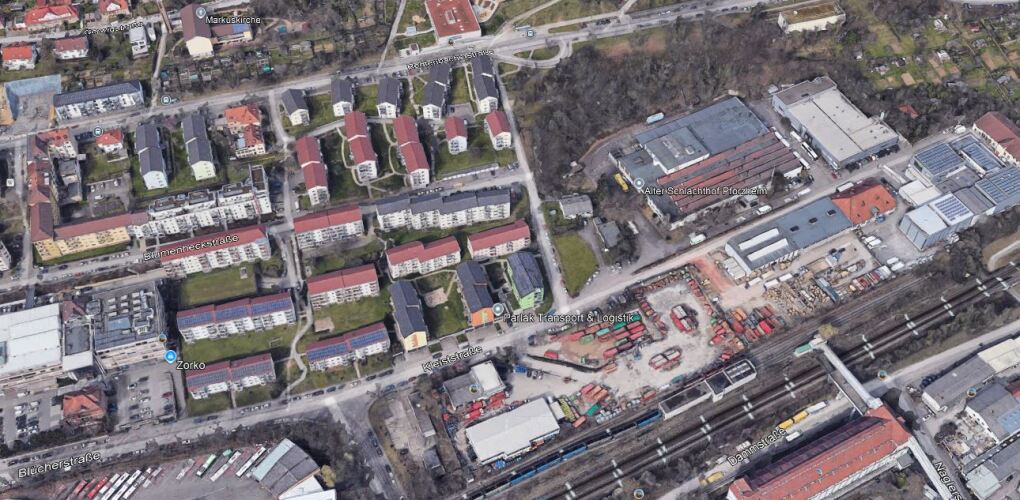 Der Eingang ist beim Markierungspunkt "Alter Schlachthof".