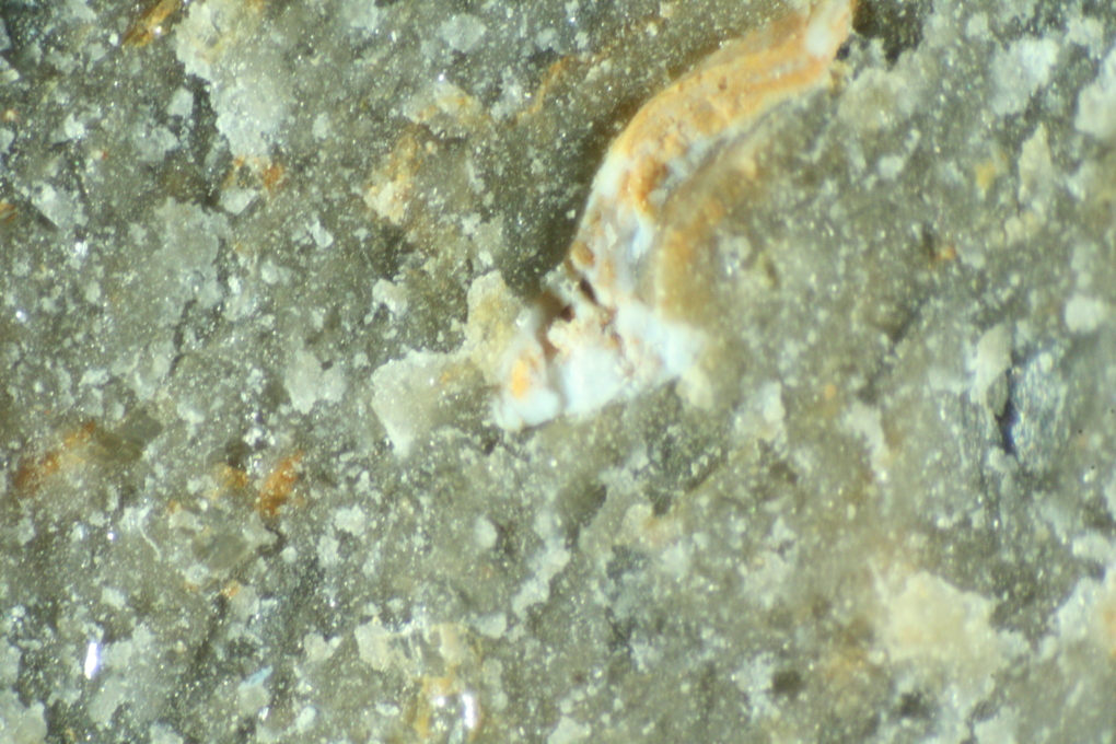 Auf der Bruchfläche war sogar ein kleines Knochen-bruchstück erkennbar: (Länge ca. 2,5 mm)